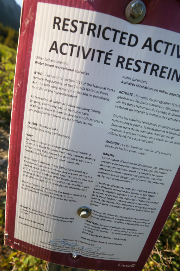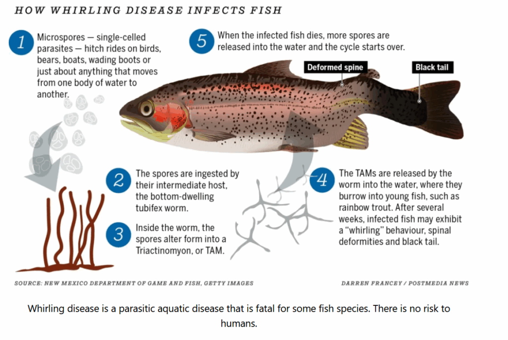 Parks Canada”s concern with whirling disease for hikers is that the parasite can attach itself to clothing or skin and can then travel from one water body to another.
