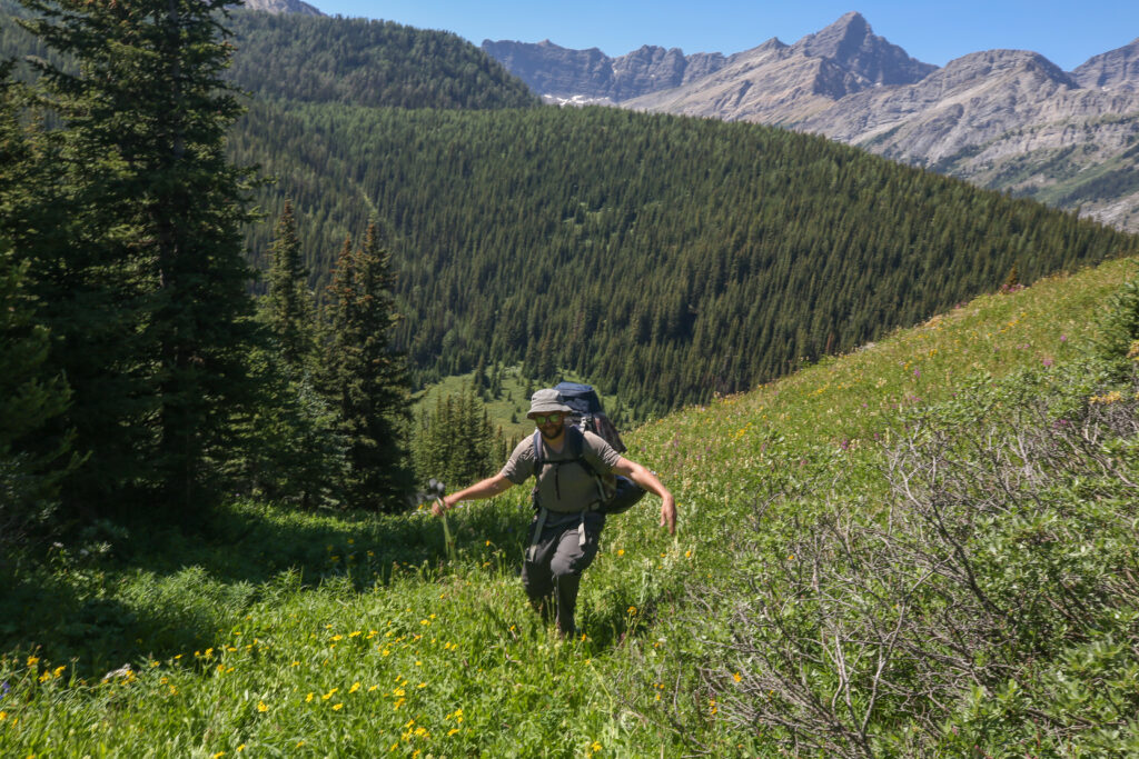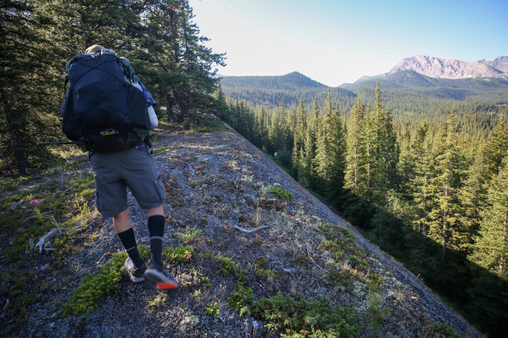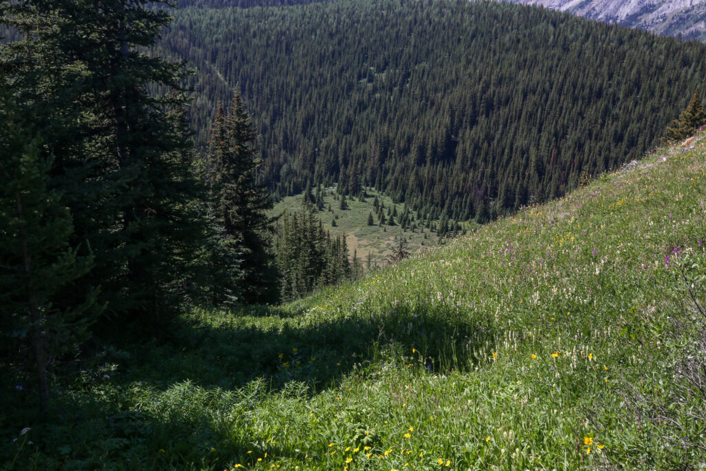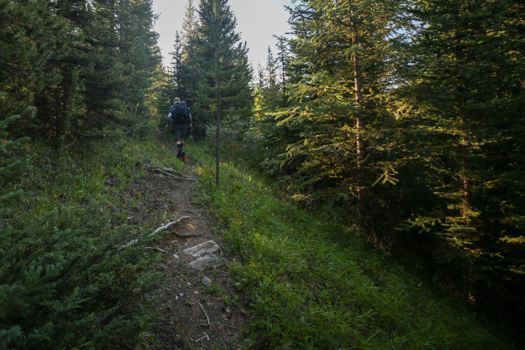 We did ponder short cutting and heading down the slope. A small cliff band could have ruined our plans quickly. So we decided to stay safe and just follow the trail.