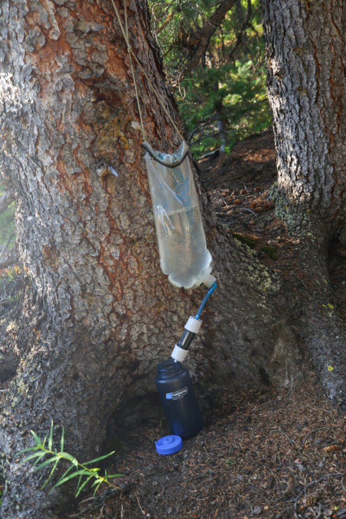 We had all brought our dinners with us and we set up a little kitchen just in an open area inside the trees behind where we had been sitting. During dinner both Bent and I took the time to filter water for tomorrow.