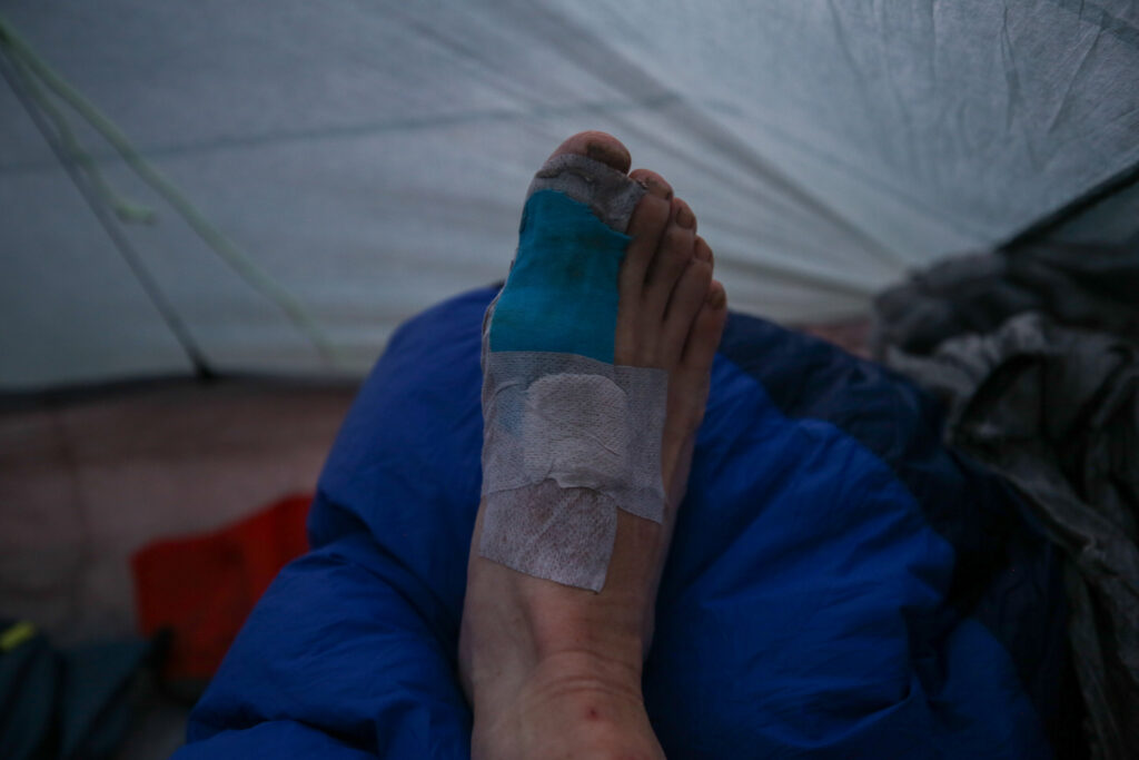My left leg frequently goes to sleep when I am sitting in my chair (maybe this was foreshadowing of things to come). So as I sat near the edge of the lake I let my legs dangle over the little lip that rimmed the lake. This gave my legs another 10 cm – 15 cm to stretch out. No numbness in my leg on this day.